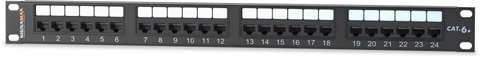 National Data Supply has several Category 6 connectivity solutions available from several manufacturers providing high quality Cat 6 patch panels that are used for high-speed LANs and are capable of carrying a data speed up to 2 Gb/s. Transmission characteristics of our patch panels meet the requirements of Category 6 specifications using PCB technology balancing signal transmission and achieving low insertion-loss, return-loss and crosstalk. HiPerlink 6 patch panels have been optimally designed to reduce crosstalk and maximize signal strength with optimized spacing between port rows for better cable routing and pre-copnfigured with T-568-B wiring inlucing an insert for T-568-A wiring. We offer huge discounts for volume orders of CAT 6 patch panels.